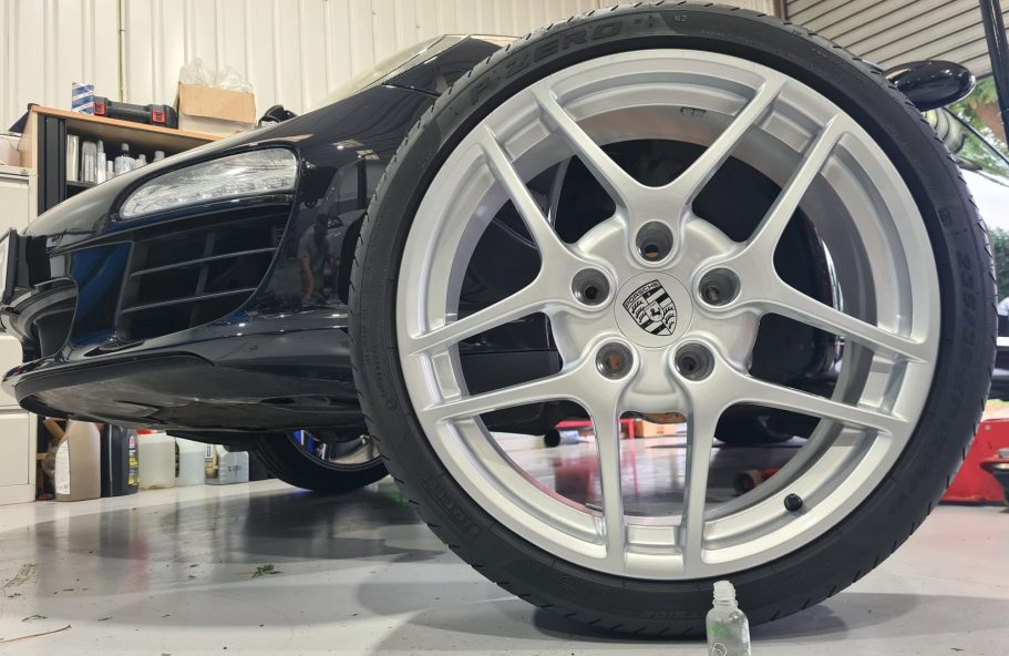 Wheels removed, clayed & decontaminated. Wheel faces, inner spokes & barrels coated.